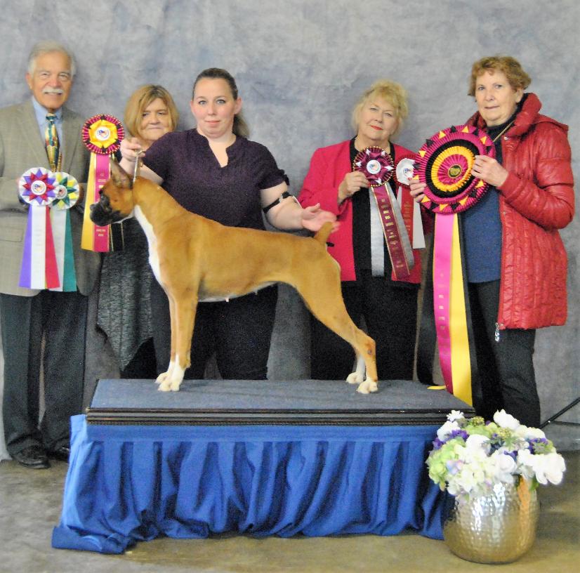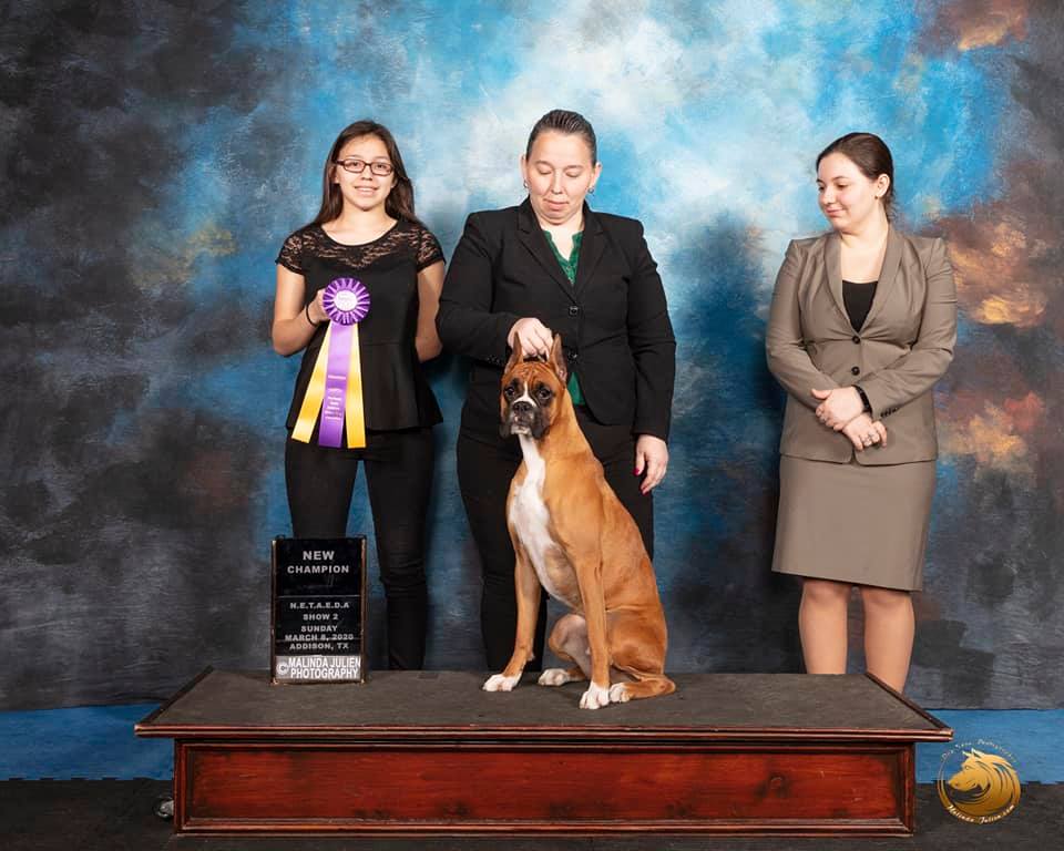 Hi! Let me tell you a little about us here at Sanchez Boxers. My name is Angie Sanchez. Boxers are my passion. I love fell in love with this amazing breed in 2006 when my husband bought home our 1st boxer from a friend that was moving and couldn't keep her. I can't imagine ever owning another breed. I'm mom to 4 kids, ages 15-22. All our dogs and puppies have daily interactions with the whole family. We started out just like everyone else not knowing a lot. We started researching the history of the breed. Asking other breeders lots of questions. We also struck up a good relationship with our Vet. We bred and had puppies for a few years before we discovered the German (Euro) boxer which we fell in love with. That's not to say that the american boxers aren't awesome as well. I decided that if i was going to do this I was going to do it right. So our 1st German (Euro) male we got in 2011 Started our new lines. We began health testing. Thanks for Paula Vandervoort for having a great talk with me about all the health test needed for boxers. It was my dream to show my boxers. So in 2012 we began showing. Which was a whole different learning experience. Never knew I would love to show as much as I have. I don't plan on stopping there. I find that I love working and training my dogs.Well I finally got my wish. Multi Ch. La Diva Box Von Sanchez is our 1st bred by keeper to help me over come alot in the show ring. She has so much fun in the ring. I love her more than she knows. She help build my confidence to step out in the show ring and have a good time win or lose. When she was bred we had high hopes for our keeper from her. 2019 changed everything for us in dog sports. We welcomed our 3rd keeper Chiquis to the family her mom is our Diva. Chiquis proved to be so versatile. She will do conformation, but loves to be working. She introduced us to trying a bunch of new things. CGC, Trick, Canine Ninja, Rally, Fast Cat And Obedience. She has proven that she can do it all. I love helping fellow boxer lovers. Don't hesitate to message me.